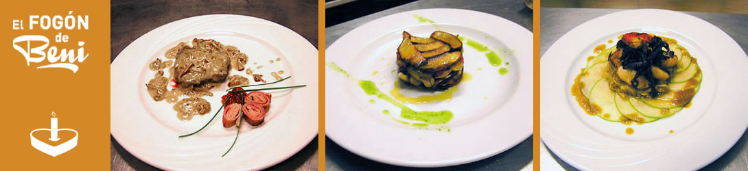 - Milhojas de verduras de temporada asadas, con escalope de foie y caramelo de vino